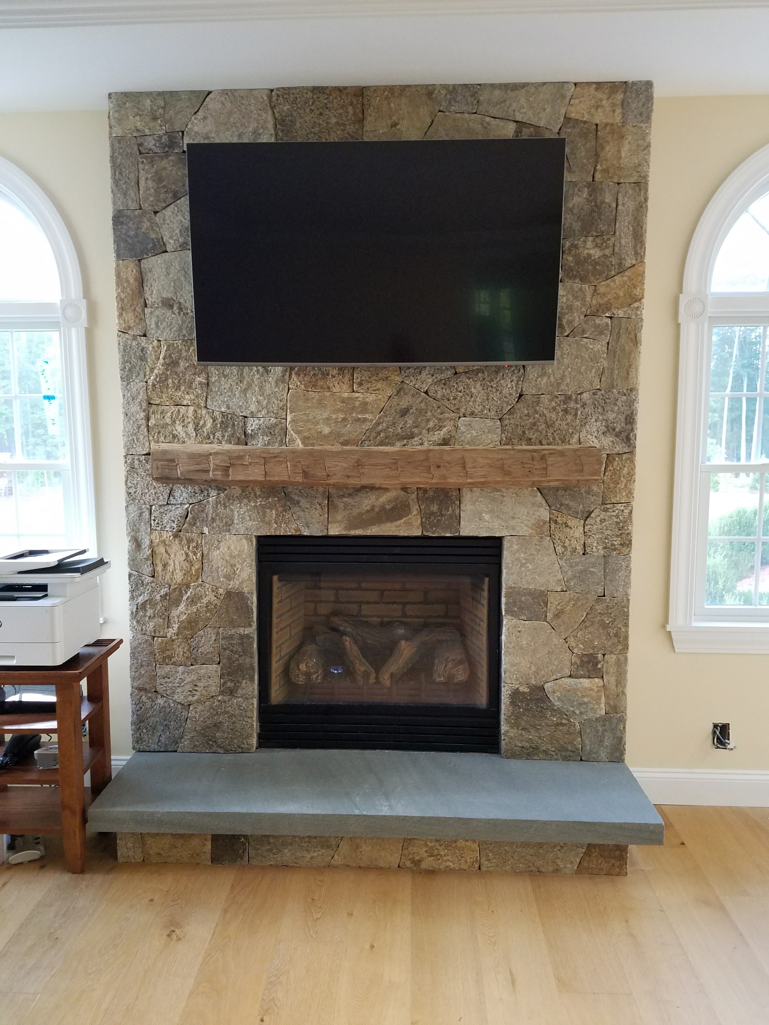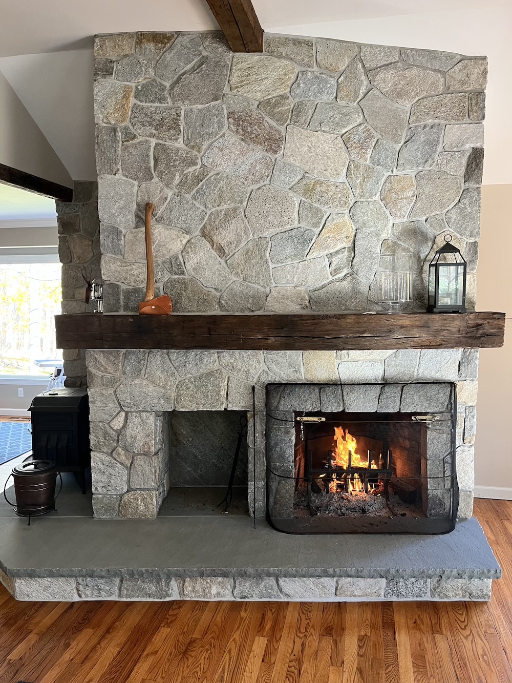 Our designs and rebuilds hit a range of aesthetics: colonial New England, modern farmhouse, refined rustic, craftsman style. The homes in Fairfield and Westchester Counties tend to house fieldstone fireplaces. Fieldstone masonry itself can vary according to stone selection and color, stone cutting technique, its joints, using dry stone technique, using river rock, etc. Projects include surrounds made from tiles, marble, granite (including slab material), concrete and geometric stone strips. We pride ourselves as being knowledgeable resources for finding large-format stone, stone slabs, and reclaimed wood, locally. These pieces make for surrounds, mantels and/or hearths with great character.